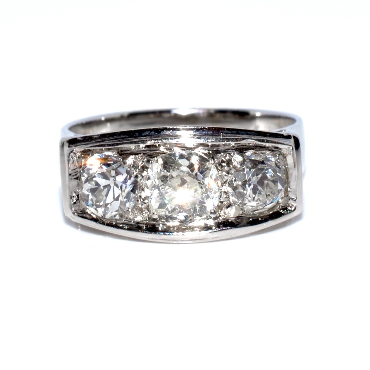Masquer les prixCette jolie bague Art-déco, en or 18 carats, est sertie de diamants taillés à l'ancienne pesant ensemble environ 1,50 carats.