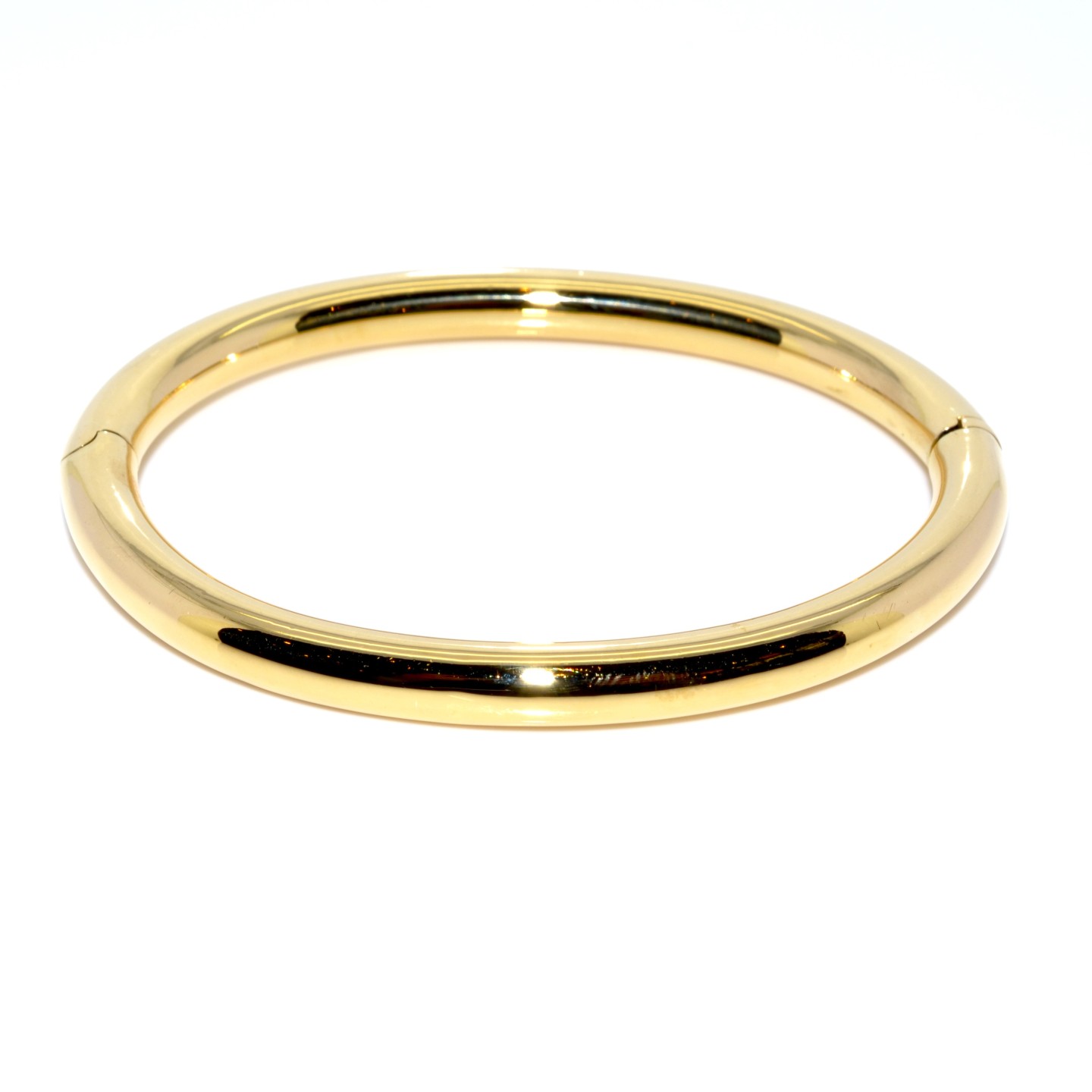 Masquer les prixJoli bracelet vintage en or 18 carats très agréable à porter. Il s'agit simplement d'un jonc d'or pesant 15,90g muni d'un fermoir à languette. Simple et élégant.